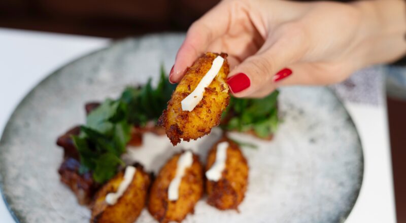 En la cocina contó con la consultoría del chef Hernán Correa, propietario del restaurante Riesen. En la vitrina del mostrador hay postres y panes de masa madre, mientras que el menú resalta por su variedad de platos inspirados en la cocina panameña con un toque internacional, como las carimañolas rellenas de pollo al curry o el tiradito de corvina con leche de tigre tropical”.